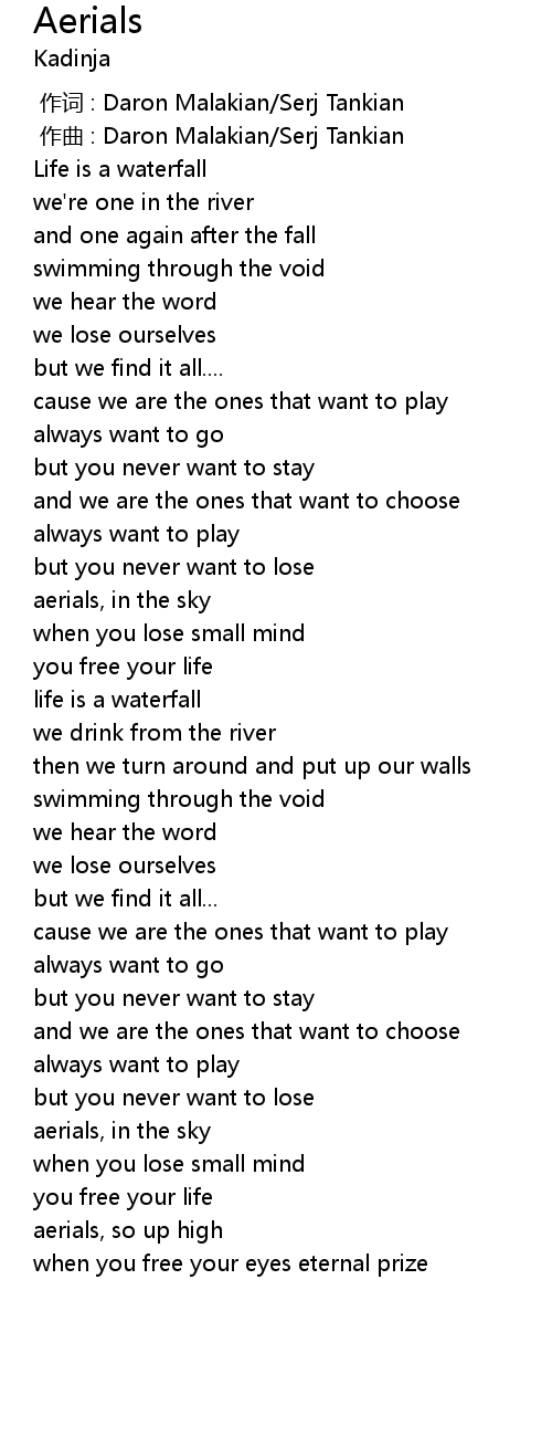 | [00:01.00] | 作曲 : Daron Malakian/Serj Tankian |