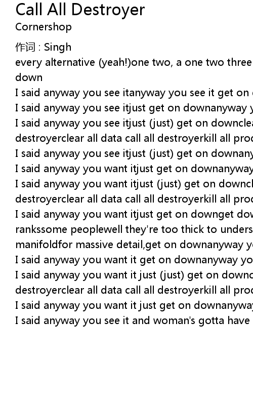 | I said anyway you want it just (just) get on downclear all data call all destroyerclear all data call all destroyerkill all producers call all destroyer | |