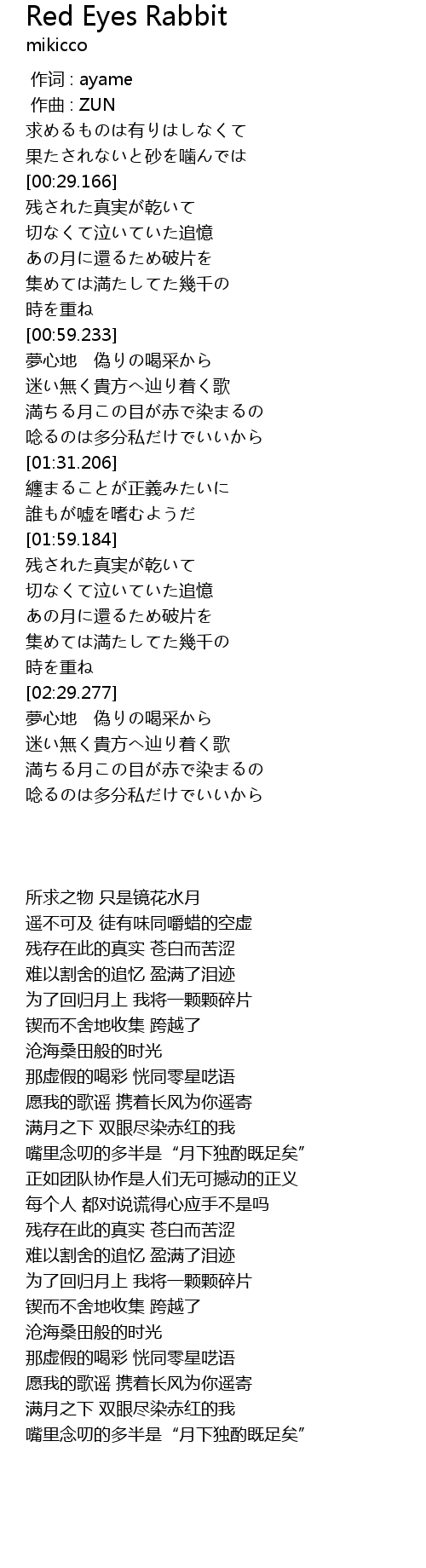 | [02:44.323] | 満ちる月この目が赤で染まるの |