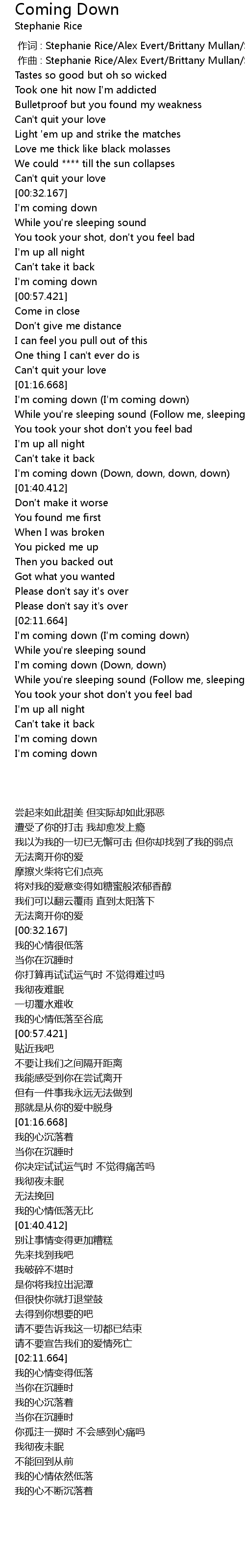 | [01:39.667] | I'm coming down (Down, down, down, down) |