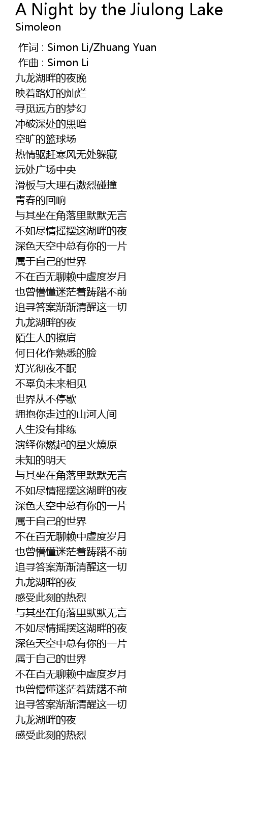 | [00:00.000] | zuò cí : Simon Li Zhuang Yuan |