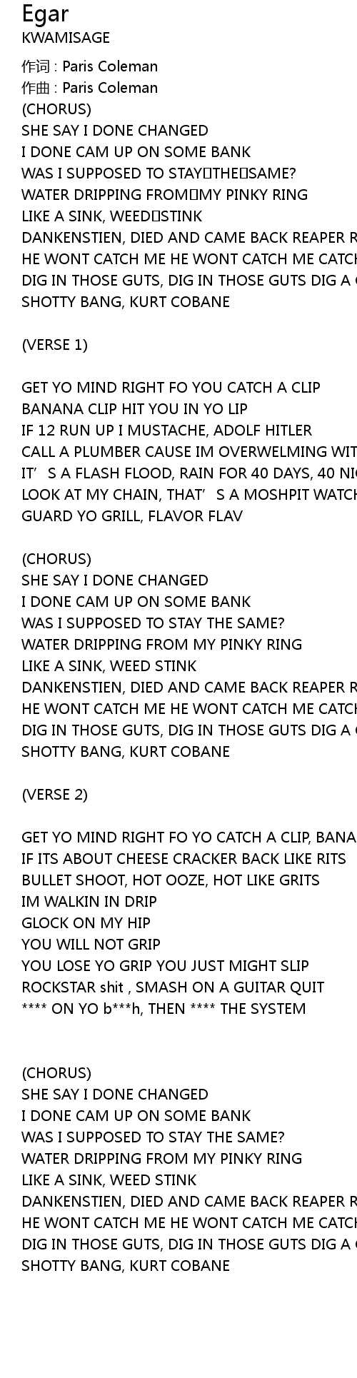 | 作词 : Paris Coleman | |