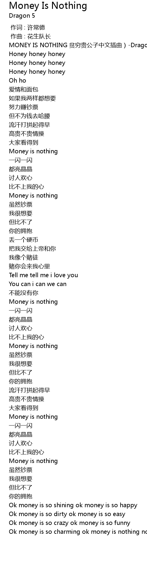 | [00:00.41] | MONEY IS NOTHING pín qióng guì gōng zǐ zhōng wén chā qǔ Dragon 5 |