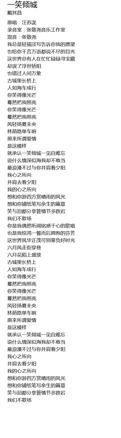 | [01:20.906] | jiù chéng rèn yī xiào qīng chéng yī jiàn zì nán wàng |