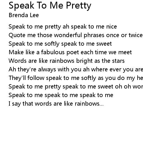 | Speak to me pretty speak to me sweet oh oh words can knock me off my feet | |