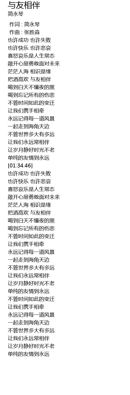 | [03:34.50] | 单纯的友情到永远 |