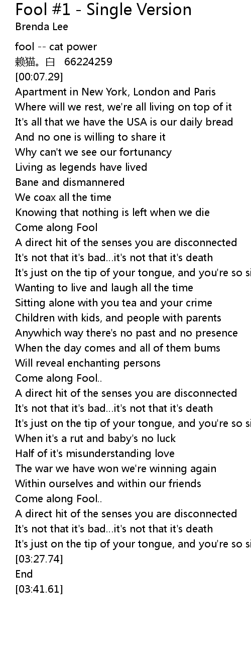 | [01:17.87] | It's just on the tip of your tongue, and you're so silent |