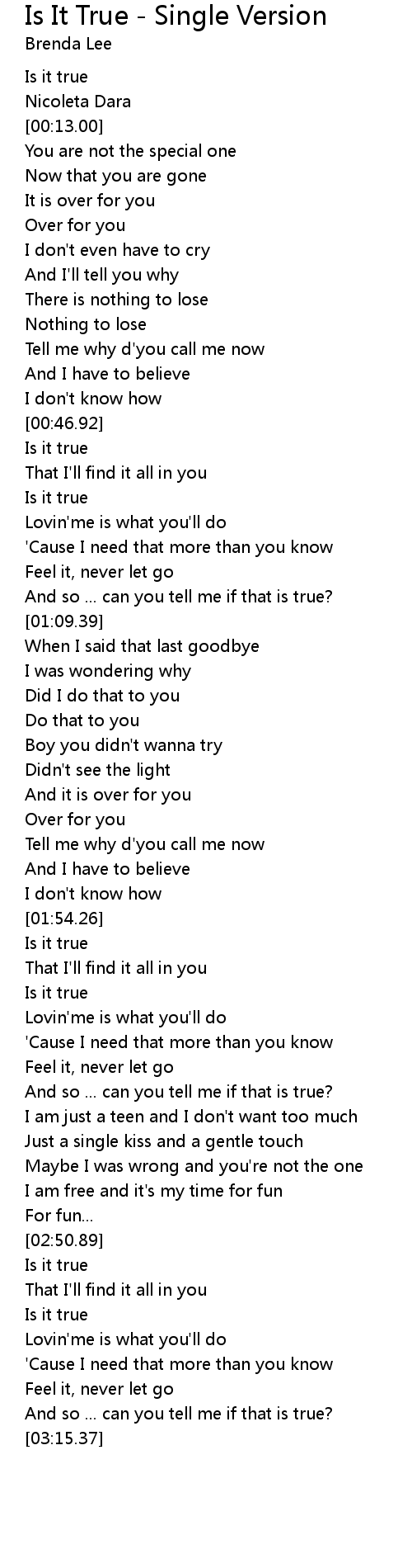 Is It True - Single Version Lyrics