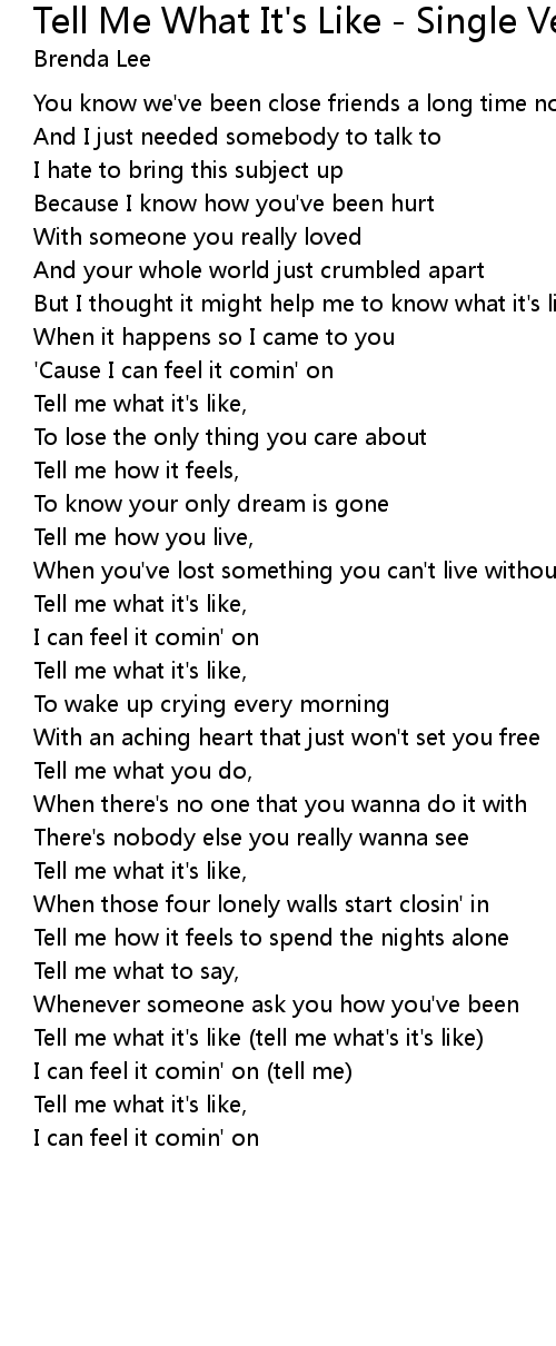 Tell me what it's like (tell me what's it's like) |