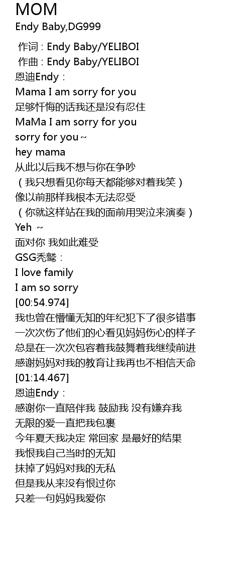 | [01:51.968] | 只差一句妈妈我爱你 |