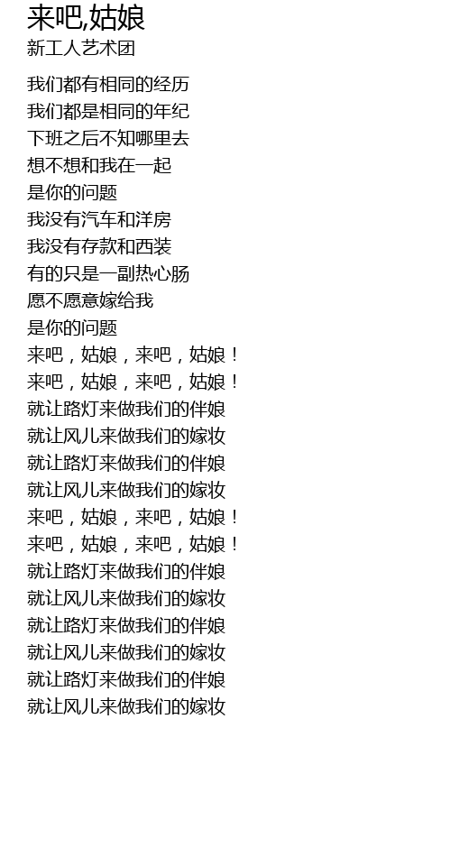 | lái ba, gū niáng, lái ba, gū niáng! | |