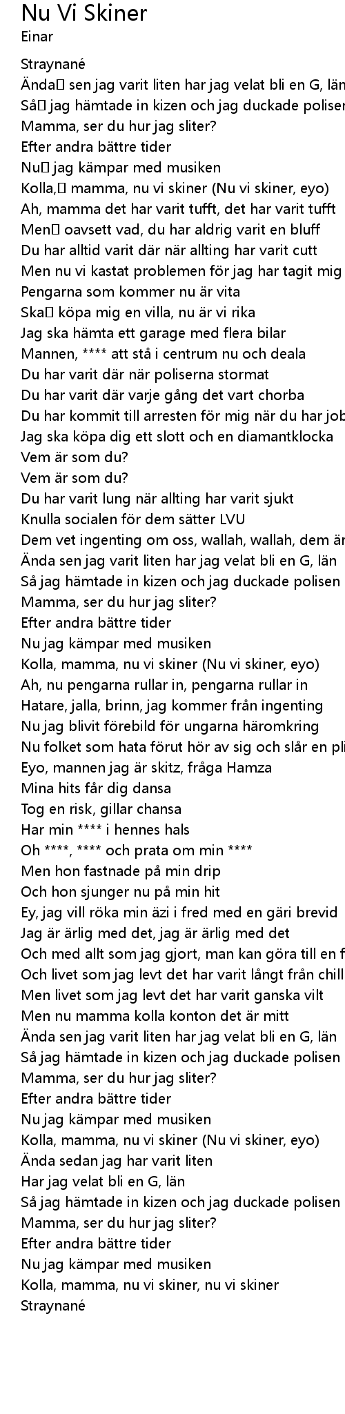 | [01:19.68] | Kolla, mamma, nu vi skiner (Nu vi skiner, eyo) |