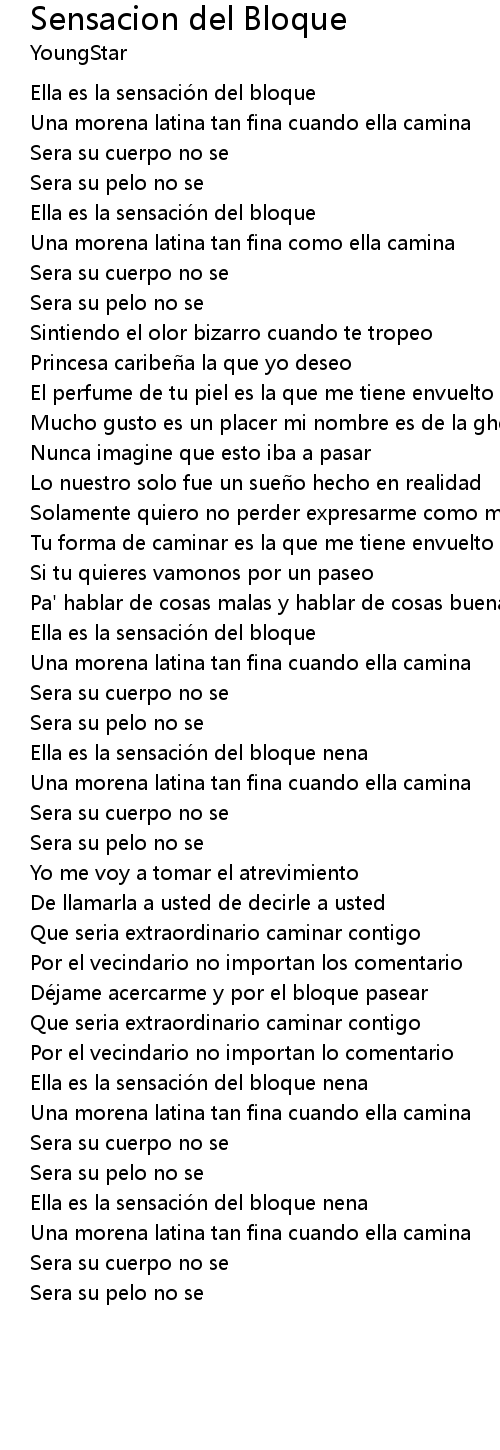 | [00:20.05] | Ella es la sensacio n del bloque |