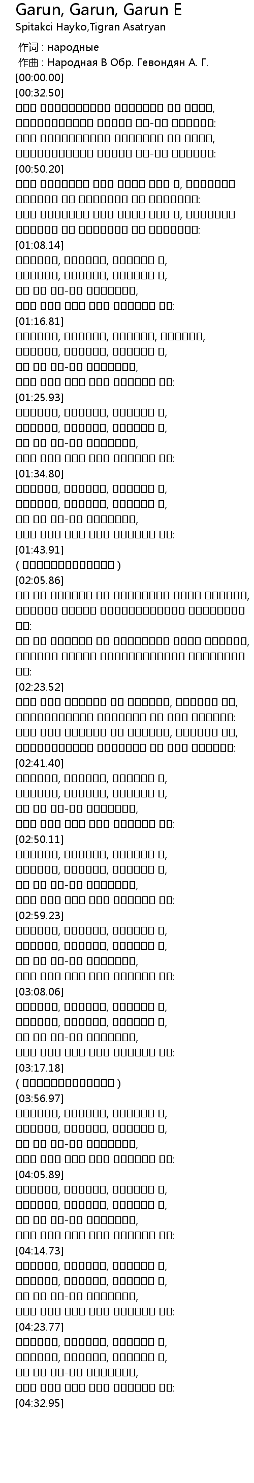 作曲 : Народная В Обр. Гевондян А. Г. |