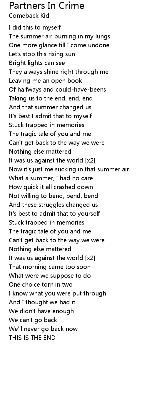 Taking us to the end, end, end |