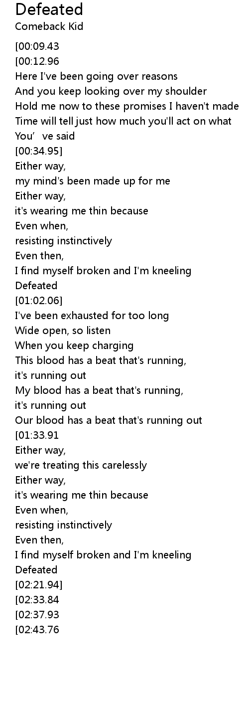 | [02:48.44][02:37.93][02:27.44] | And I'm kneeling defeated |