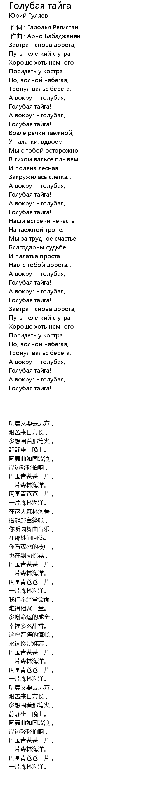 | [00:38.36] | Голубая тайга! |