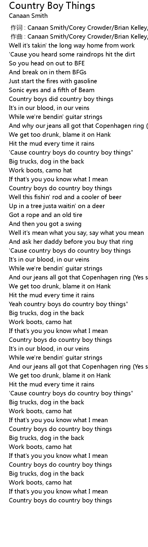| [00:47.62] | 'Cause country boys do country boy things" |