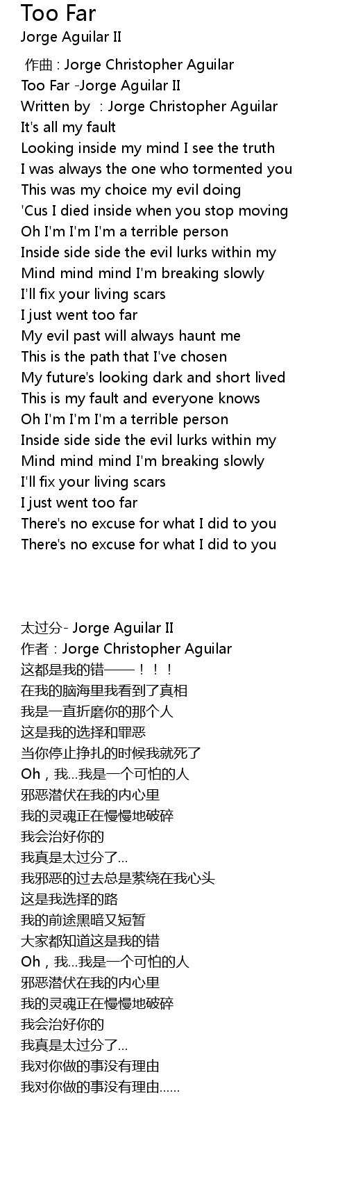 | [00:00.243] | Too Far Jorge Aguilar II |