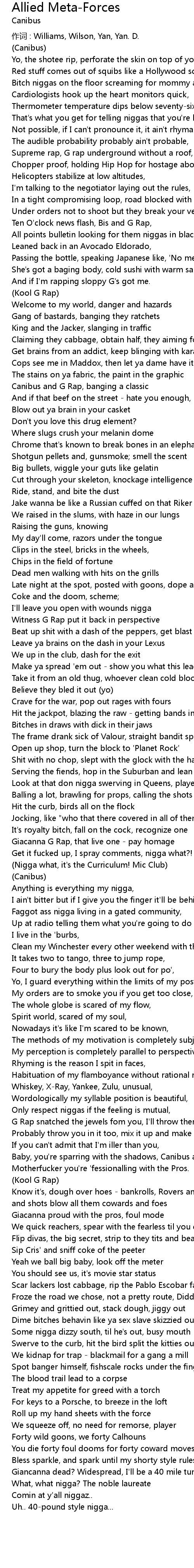 | Baby, you' re sparring with the shadows, Canibus and G Rap flow, | |