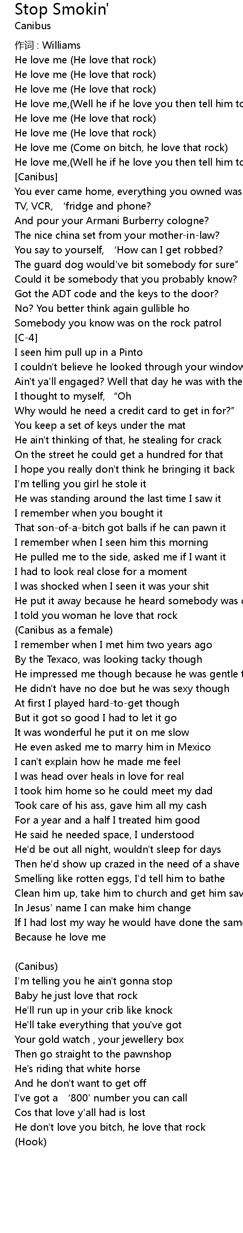 | He love me Come on bitch, he love that rock | |