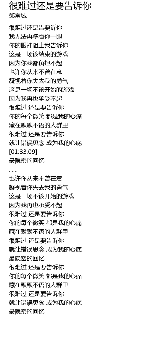 | [02:52.20] | hěn nán guò hái shì yào gào sù nǐ |