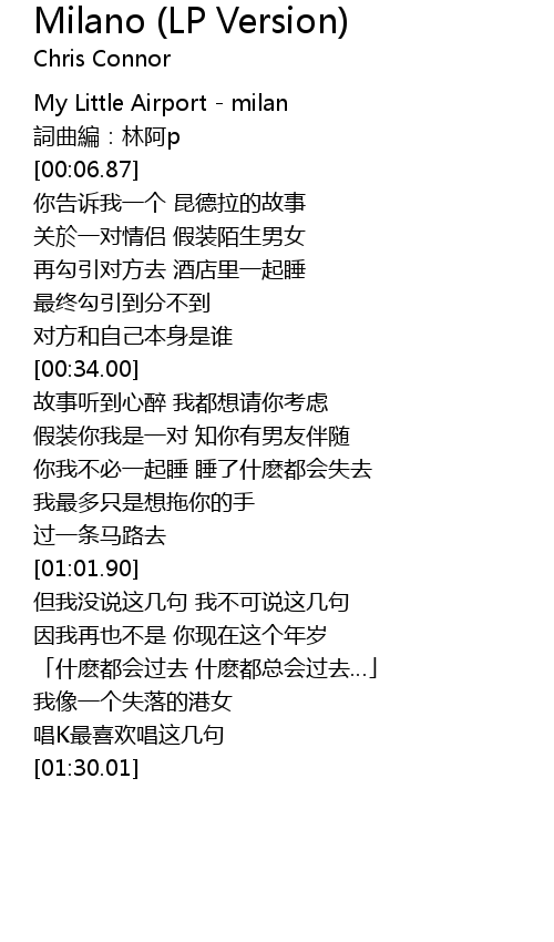 | [00:10.87] | 你告诉我一个 昆德拉的故事 |