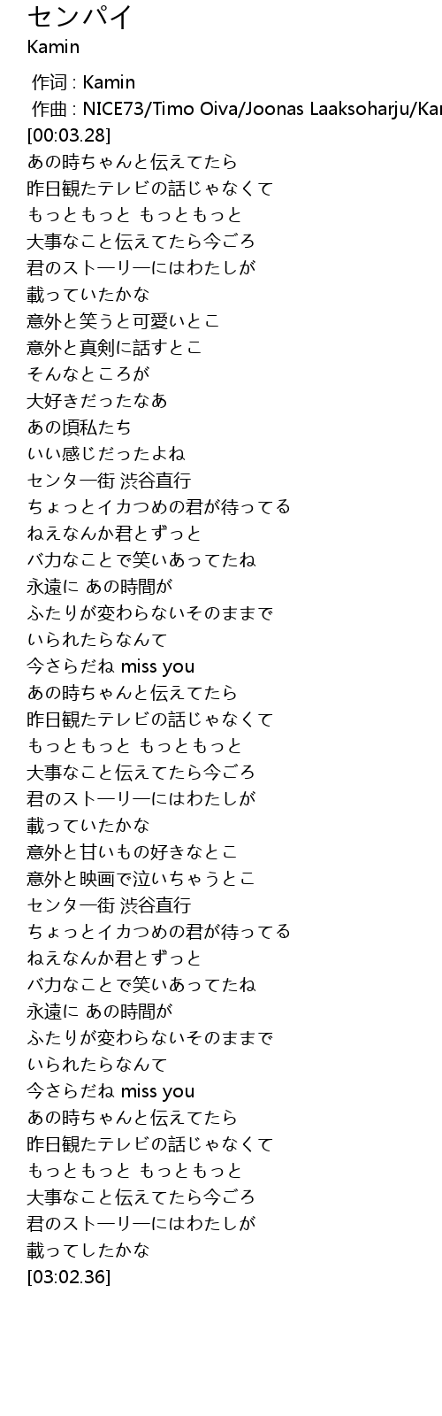 | [00:00.00] | 作词 : Kamin |
