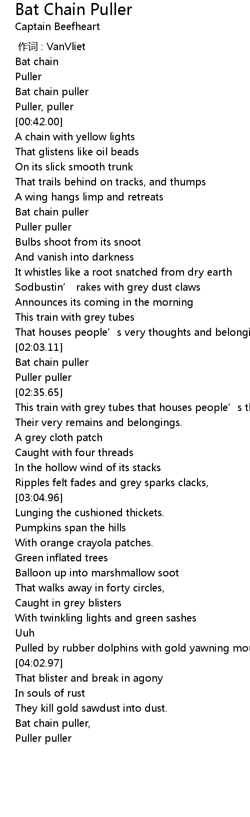 | [04:19.18] | Bat chain puller, |