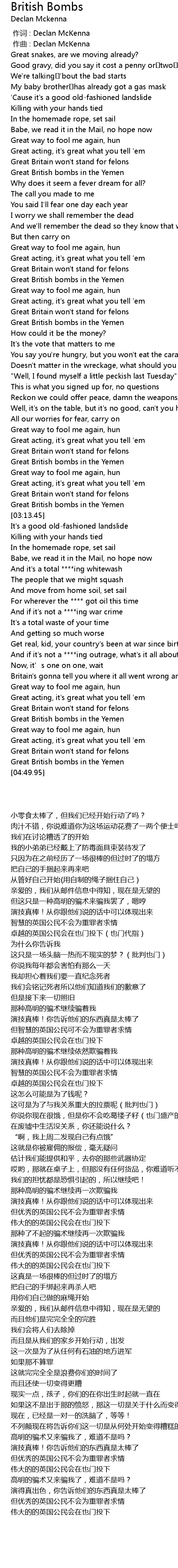 | [04:14.83] | Britain' s gonna tell you where it all went wrong and then carry on |