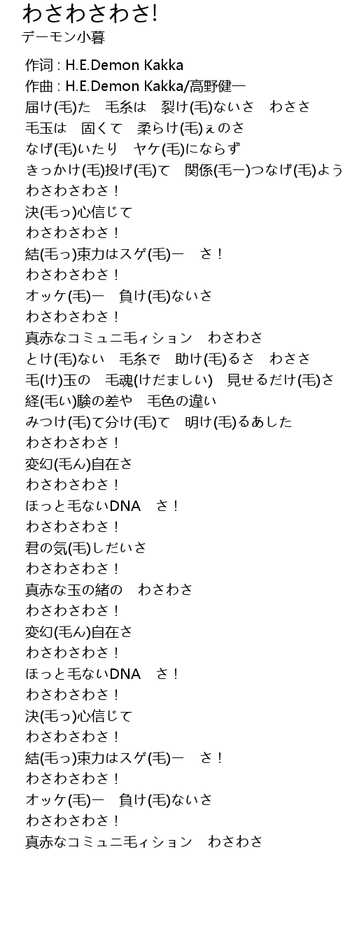 | [01:35.807] | とけ(毛)ない 毛糸で 助け(毛)るさ わささ |