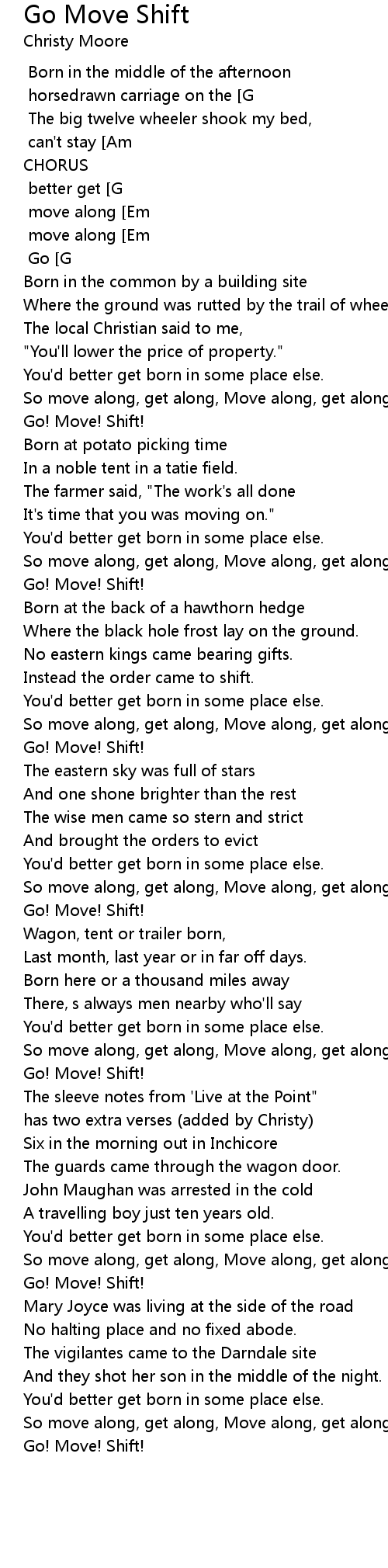 | You [D] can't stay [Am] here the po-[D]-liceman [Em] said. | |