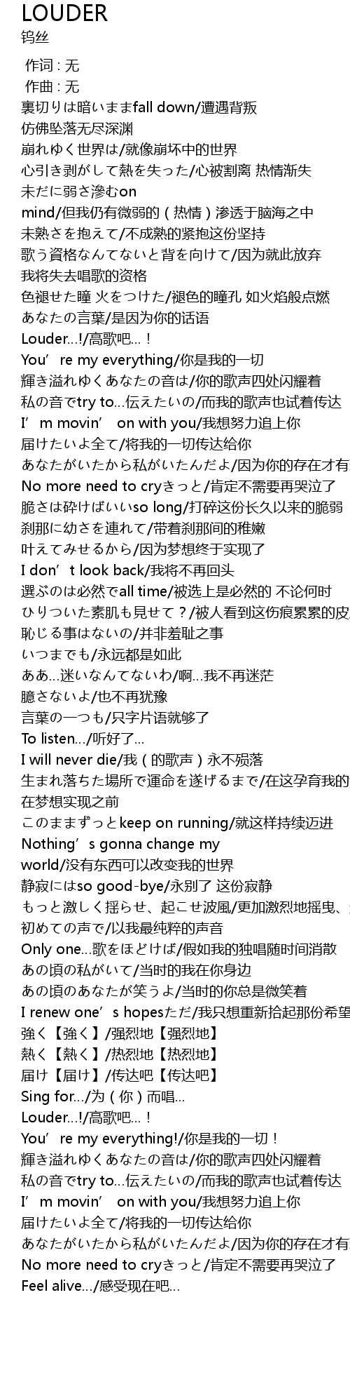 | [02:44.709] | Louder…!/高歌吧...! |