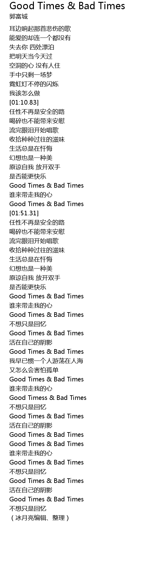 | [00:41.29] | 耳边响起那首悲伤的歌 |