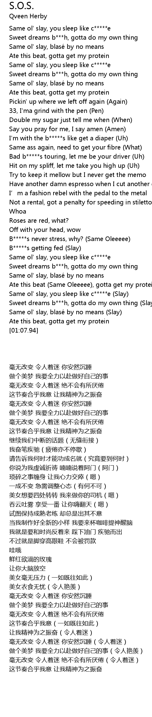 | [00:59.85] | Same ol' slay, you sleep like c*****e (Slay) |