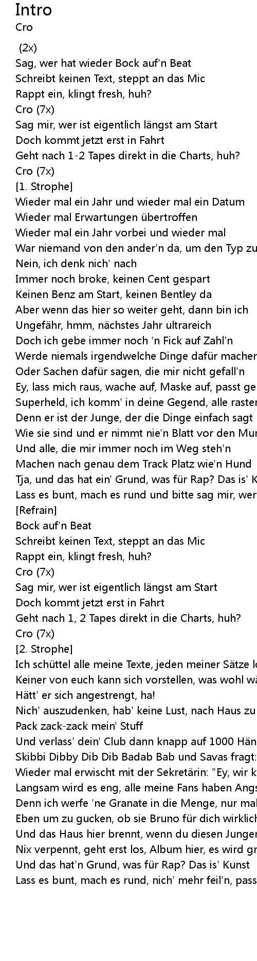 | Ich schüttel alle meine Texte, jeden meiner Sätze locker aus'em Handgelenk | |