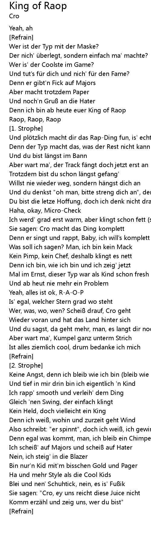 | Wer, was, wo, wen? Scheiß drauf, Cro geht | |