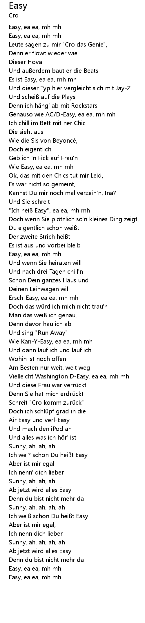 | [00:55.72] | "Ich heiß Easy", ea ea, mh mh |