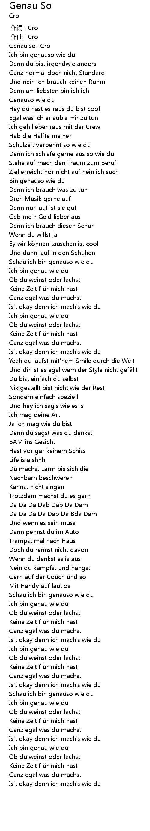 | [01:13.815] | Is't okay denn ich mach's wie du |