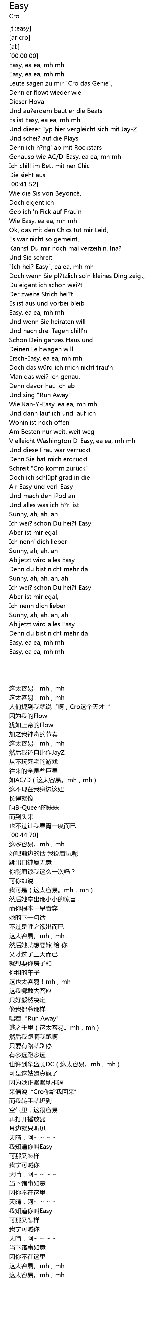 | [00:55.29] | "Ich hei? Easy", ea ea, mh mh |
