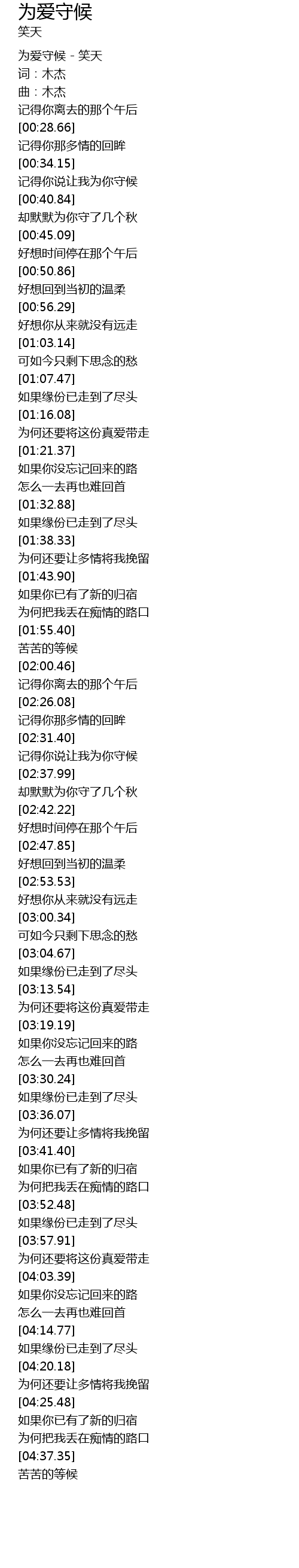 | [00:00.00] | wèi ài shǒu hòu xiào tiān |