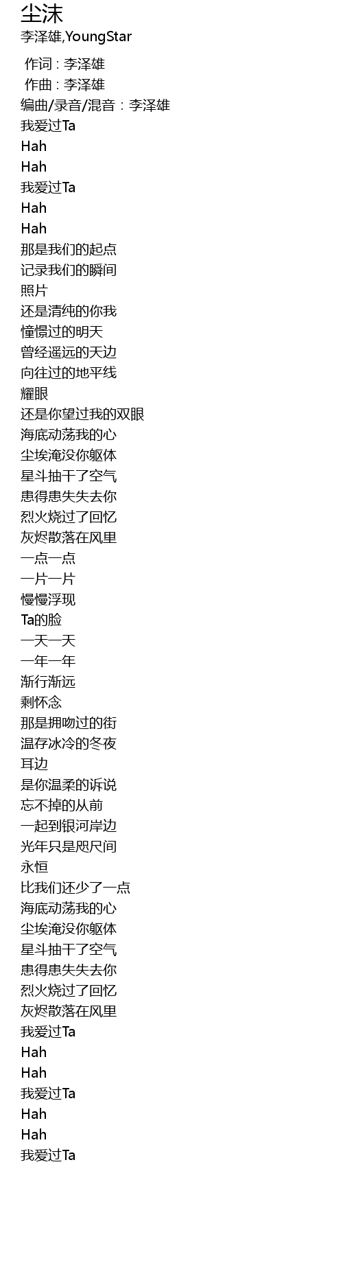 | [00:04.147] | 编曲/录音/混音:李泽雄 |