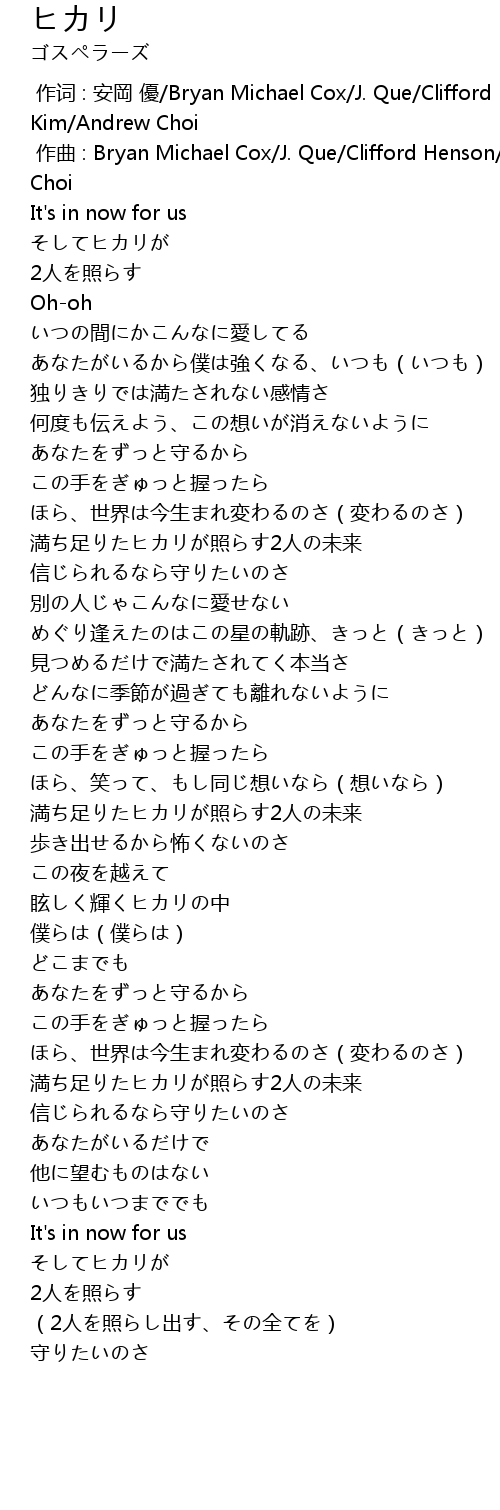 | [02:17.657] | 満ち足りたヒカリが照らす2人の未来 |