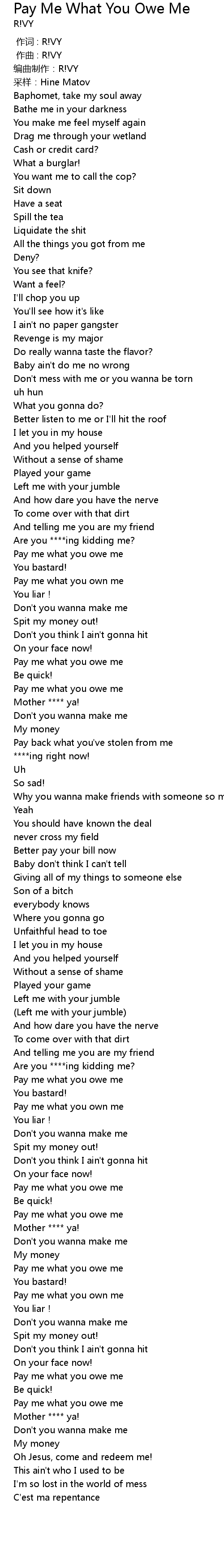 | [01:27.060] | Pay back what you' ve stolen from me |