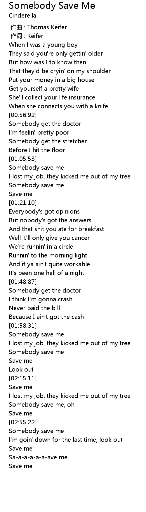 | [02:48.65] | Somebody save me, oh |