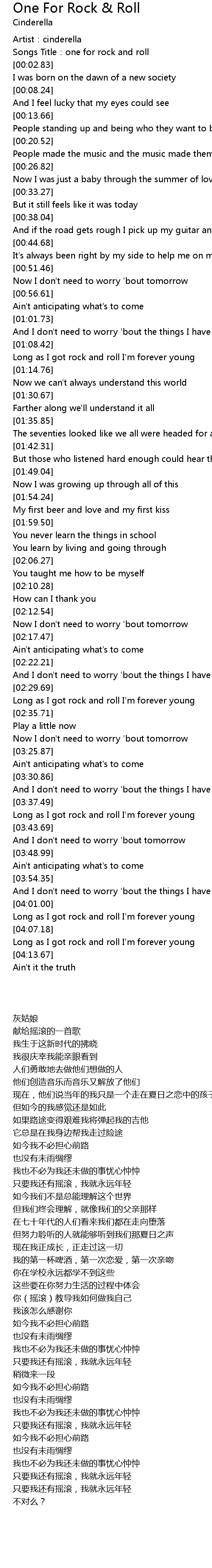 | [03:39.93] | Long as I got rock and roll I' m forever young |