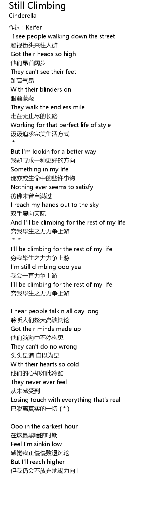 | And I'll be climbing for the rest of my life | |