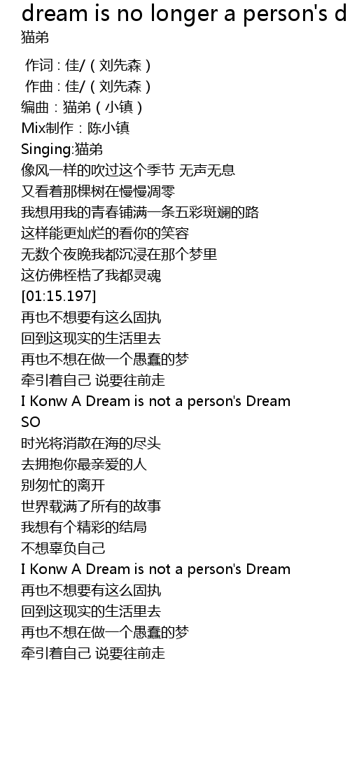 | [01:43.952] | I Konw A Dream is not a person' s Dream |