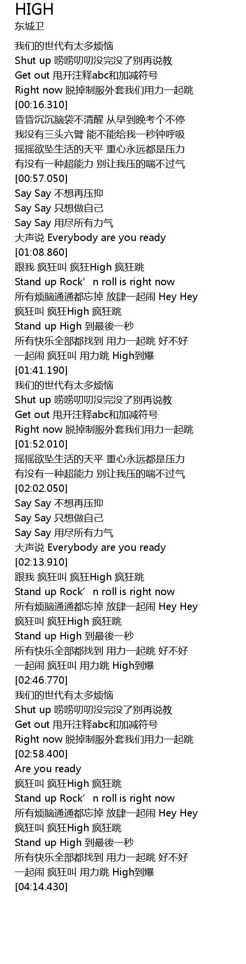 | [02:38.550] | 一起闹 疯狂叫 用力跳 High到爆 |