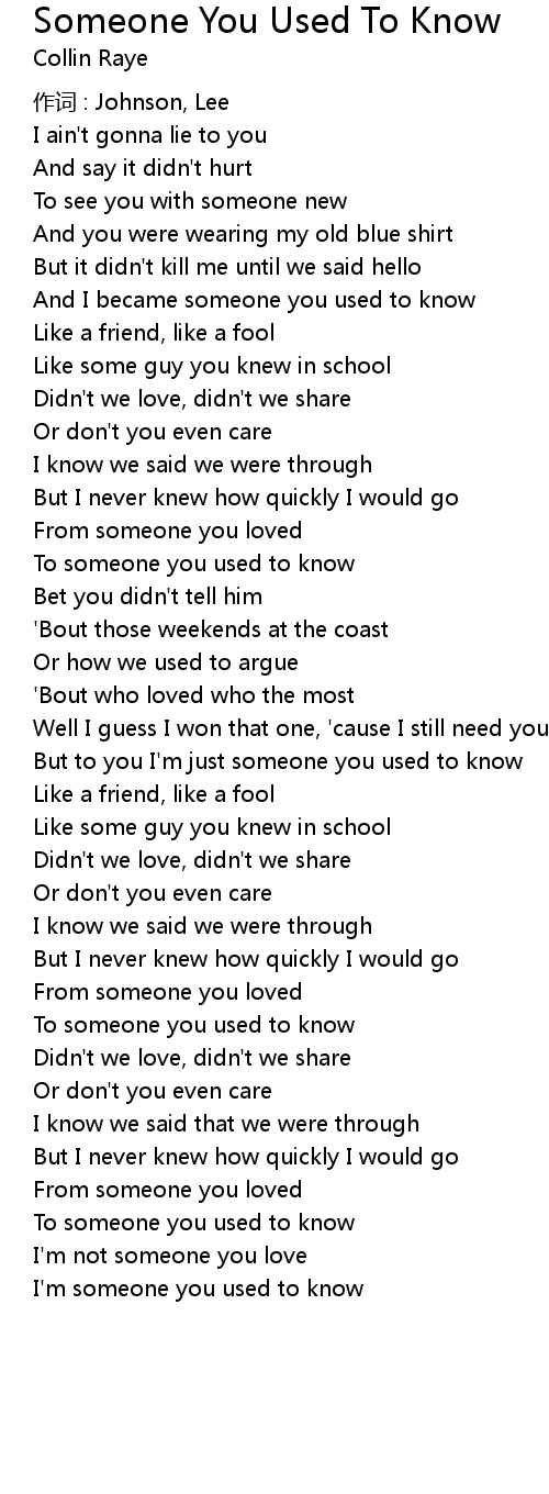 | But to you I'm just someone you used to know | |